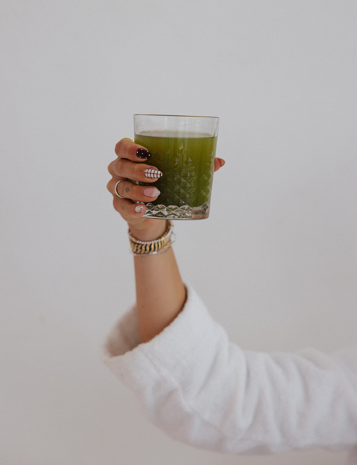 Both formulas use identical actives like matcha, chlorella, L-theanine, baobab, and hyaluronic acid so your body and skin receive one aligned signal.
